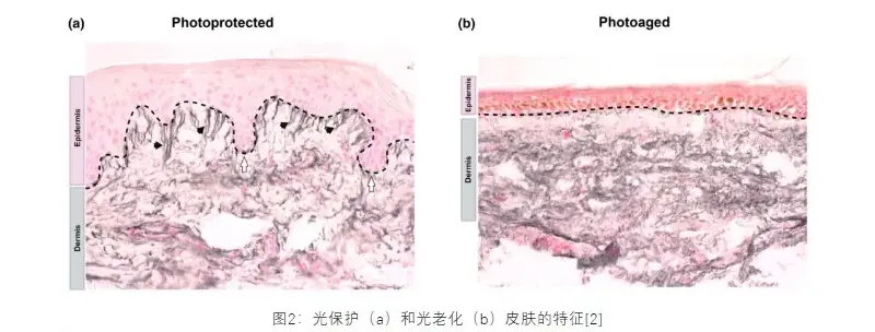 Fotoîmbătrânirea este rezultatul expunerii pe termen lung la radiațiile solare, inclusiv ultraviolete (UV), lumina vizibilă și lumina infraroșie (IR). În timp, această expunere va duce la daune cumulate, modificări ale pielii și degradare structurală. Aceste efecte sunt ridurile, pigmentul anormal, modificările texturii, hiperplazia țesutului elastic, reducerea volumului, telangiectazie și hiperkeratoză, care împreună duc la îmbătrânirea prematură a pielii.