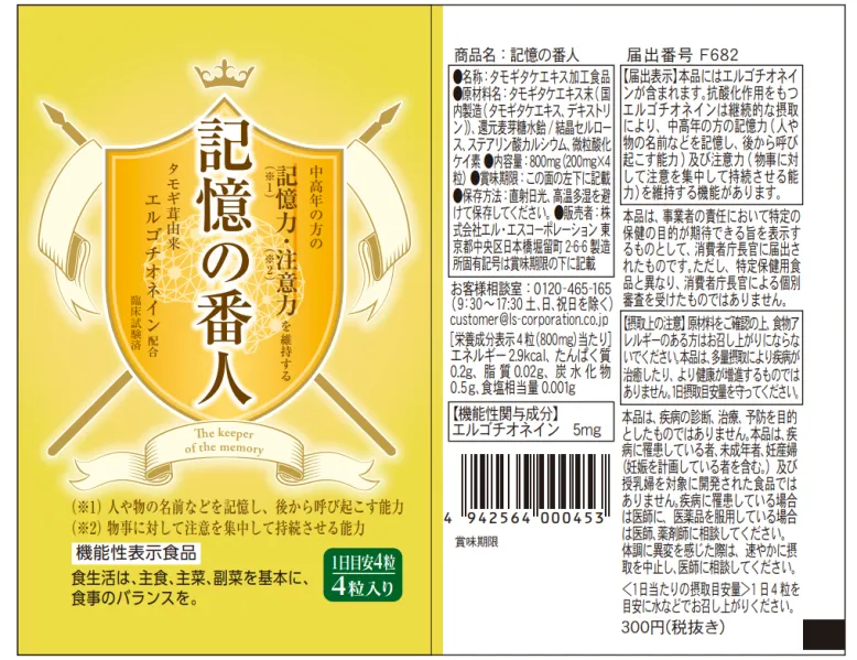 Suplimentul de ergotioneină lansat de LS Corporation din Japonia este un produs conceput pentru a aborda declinul memoriei la persoanele de vârstă mijlocie și în vârstă.